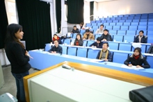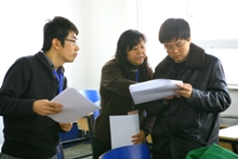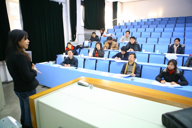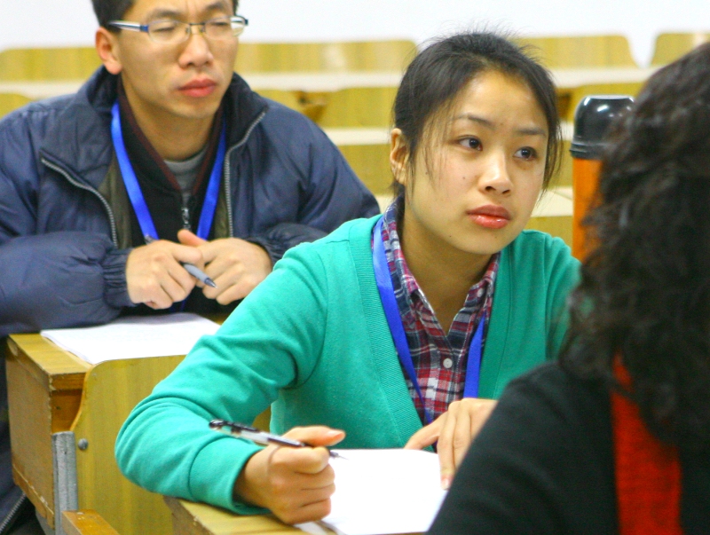 你可不要以为这是在国外某大学,其实这是obao欧宝娱乐 2010年教师招聘商学院面试组现场的一幕。当面试官见应聘者是位美国名校毕业的博士生时,马上改用英语提问。应聘者也表现得十分机敏,立刻用纯正的美语侃侃而谈。一袭浅灰色正装的她看起来十分干练。