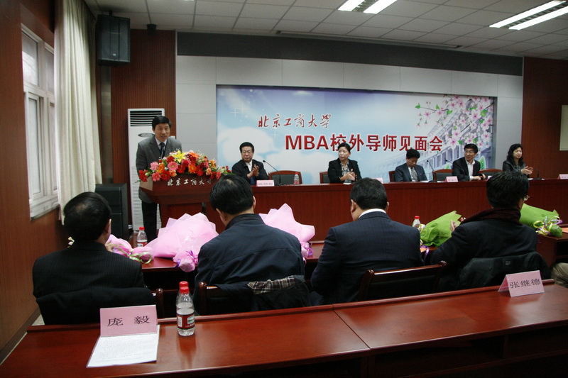 见面会由商学院书记庞毅主持,他向大家介绍了来宾,学生们向导师们献上了鲜花。科技处处长王国顺致欢迎辞,对各位专家受聘我校MBA校外导师表示欢迎和感谢,并且呼吁MBA学生把握难得的机会,与专家进行沟通,将理论知识与企业管理实践相结合,提升自己的理论水平,增加实践能力。