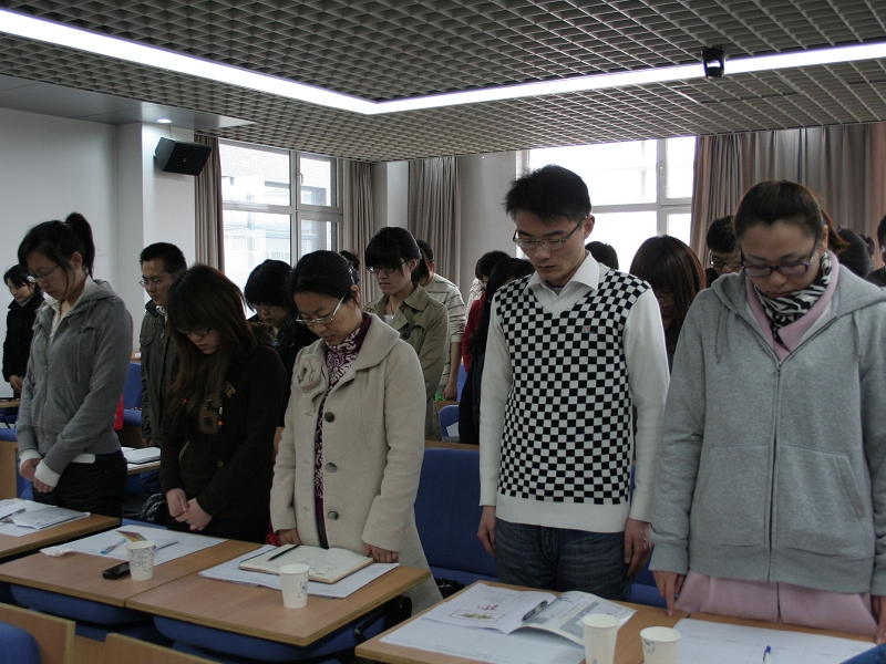 9:00,良乡校区行政楼106,参加辅导员深度辅导工作交流会的教职员工在会议前集体默哀3分钟,愿逝者安息,生者坚强。