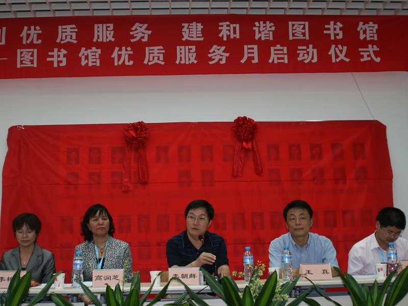 5月19日,以“创优质服务 建和谐图书馆”为主题的图书馆优质服务月活动在良乡校区图书馆116室正式启动。学校副校长李朝鲜、图书馆馆长高润芝、副馆长张长恒、商学院王真教授出席启动仪式并讲话。副馆长李艳芬主持仪式。
