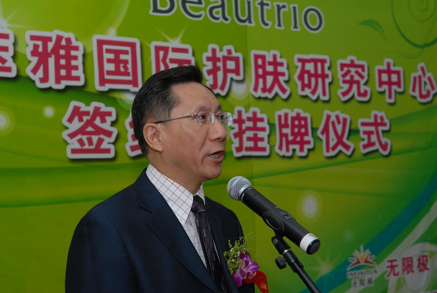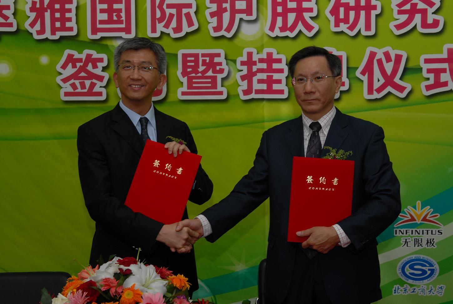 会上谢志华副校长亲切致辞,并与杨国晋高级副总裁签订了合作合同。杨国晋副总裁为何聪芬教授、董银卯教授颁发了“萃雅国际护肤研究中心”主任和首席研究员聘书。