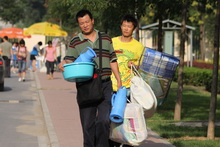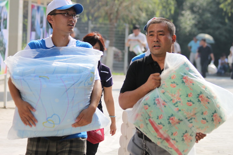 和母亲对孩子依依不舍不同,父亲更为洒脱,一位从东北送孩子来上学的父亲边擦着脸上的汗边对记者说:“孩子来了就是来经受锻炼,涉及学习、生活、交友等等很多方面。独生子女没受过什么苦,上大学了,希望儿子能尽快成熟,逐渐成长。”