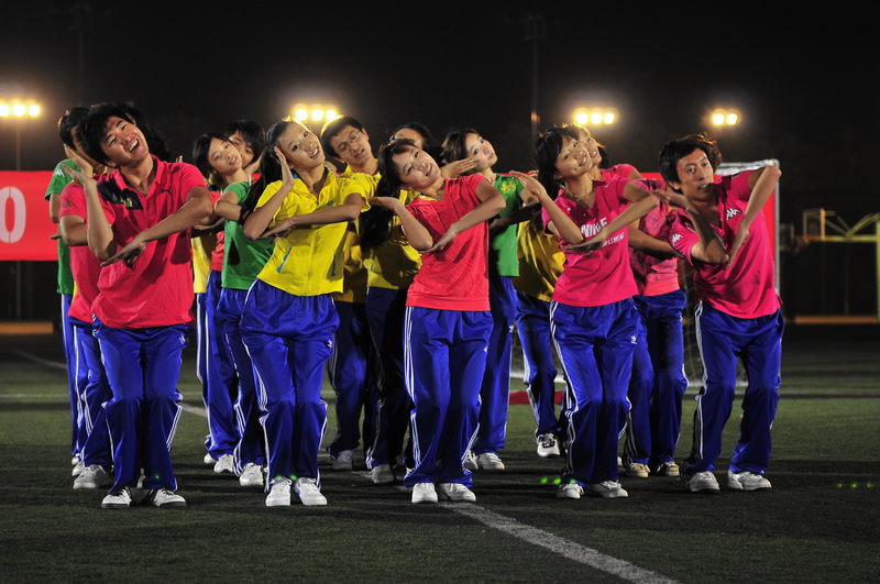 据记者了解,学校为本届联欢会做好了充分的准备工作,工作人员与演员们不辞辛劳于演出前几天晚上彩排多遍,而且不同与往日学生们坐在看台上观看节目,这次学生们在操场上围坐一圈呈花形绽放,从各角度都可以近距离观看到演出,而中间的“花心”便是师生们展示的舞台。