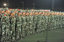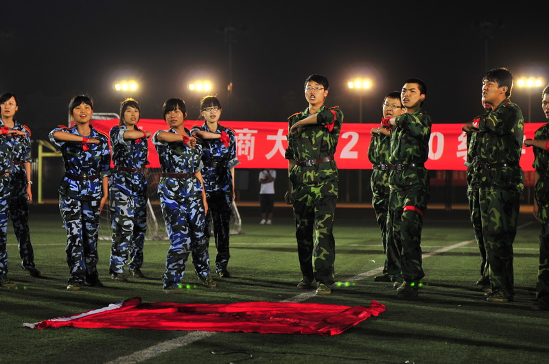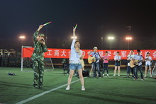 我校2010级军训联欢会于9月9日晚8点半在良乡校区操场举行。校党委副书记、军训总指挥卢思锋,武警部队副政委、军训团团长吕彦华中校,学生处处长、军训团政委吕素香,保卫处处长顿劲松,宣传部副部长袁小年,学生处副处长、军训团副团长徐红京,保卫处副处长、军训团副团长陶伟,校团委书记、军训团副政委吕良等领导出席与学生共度联欢。各营教官及各院系辅导员或参与其中,或到场观看。