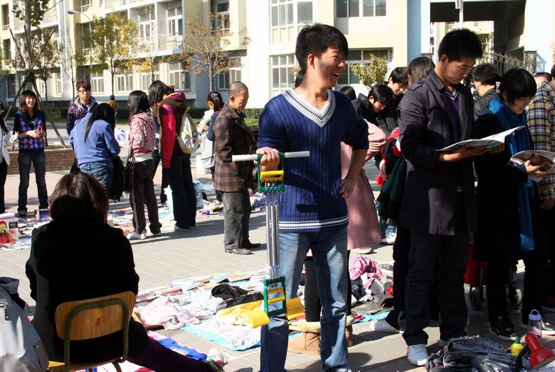当日中午,在学生生活区还举办了“跳蚤”市场。“跳蚤”市场以废旧物品循环利用、提高节约意识的目的。同学们热情踊跃参与,活动现场气氛热烈。