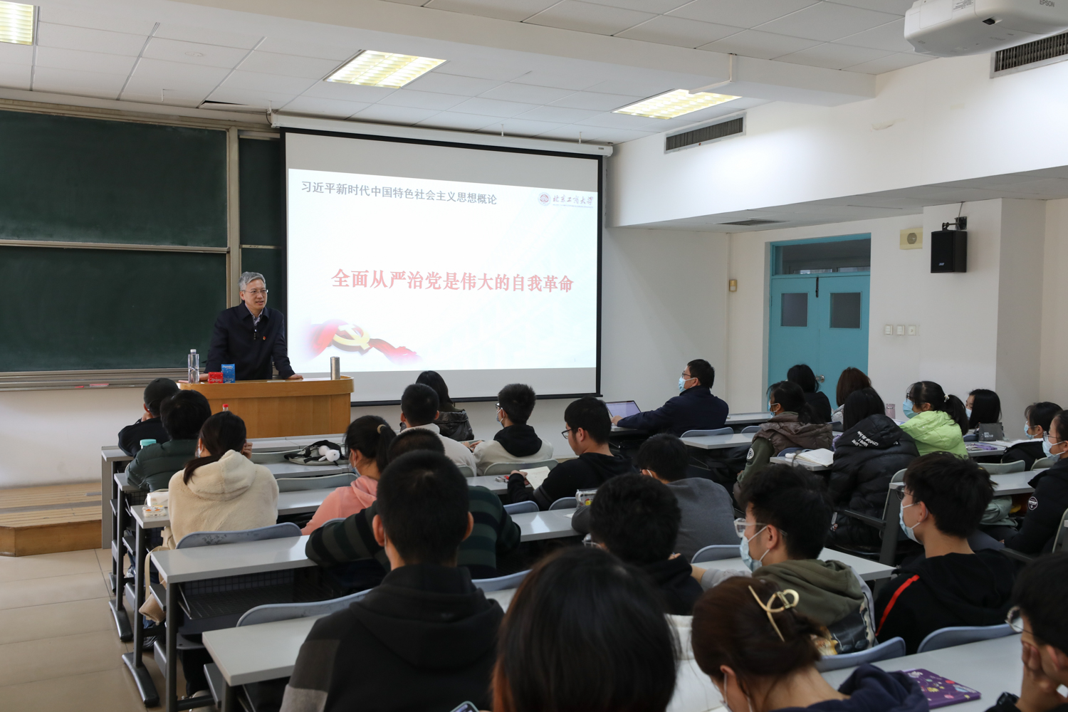 党委副书记李中奇结合自身的工作实际,围绕“党的百年辉煌和挫折”和“全面从严治党是伟大的自我革命”两个主题,结合百年奋斗重大成就和历史挫折进行了深入浅出的分析,对全面从严治党的自我革命性质进行了精彩的讲解,赢得了学生的广泛认可。