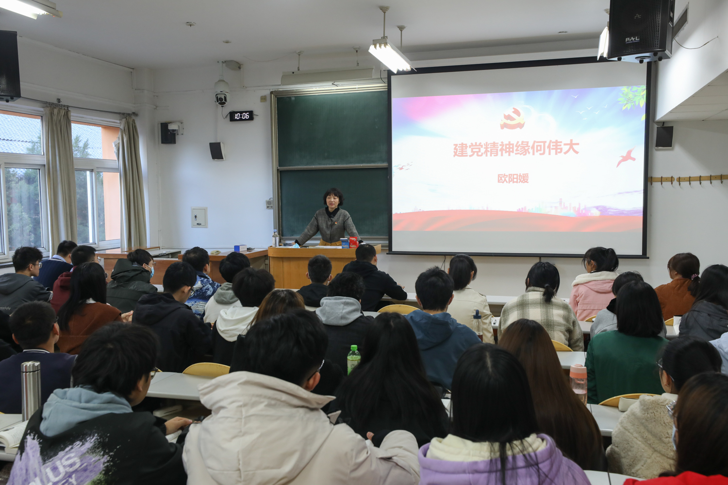 党委常委、纪委书记、监察专员欧阳媛以“中国共产党的百年历程”为题,从历史和现实相结合的视角回答了中国共产党的百年辉煌和伟大创造,教育广大同学坚定理想信念,强调了党风廉政教育的重要性。