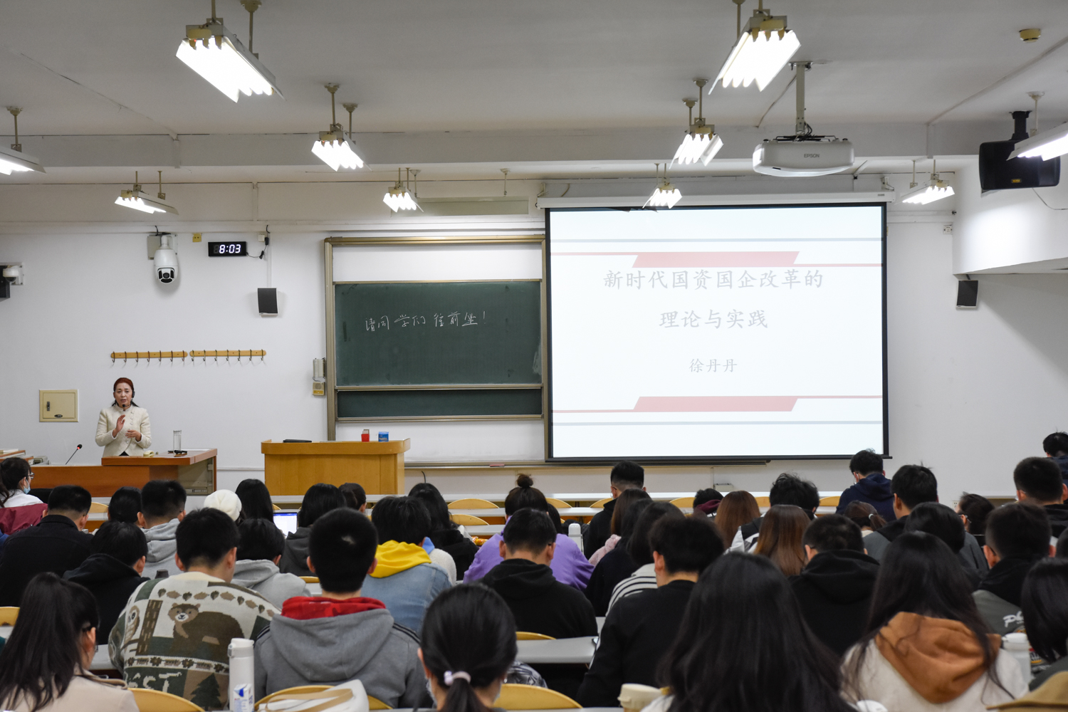 党委常委、副校长徐丹丹围绕中国特色社会主义经济专题,为我校研究生深入讲解了新时代国资国企改革的理论与实践,就充分坚持党的领导,加强党的建设这一国有企业的根与魂,把党的领导和现代企业制度统一起来推动国资国企改革进行了深入浅出的讲授。