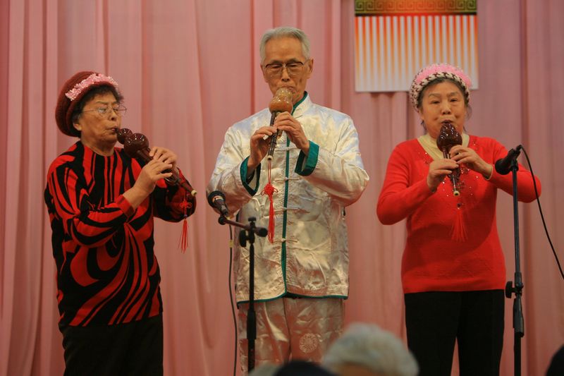 会上,金乐艺术团的老同志为大家表演了军乐小合奏、小合唱、扇子舞、京剧、独唱、时装秀、舞蹈等,博得观众一片喝彩。