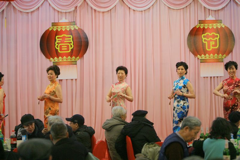 在团拜会上,校领导向离退休老同志一一敬酒,给老同志拜年祝福。