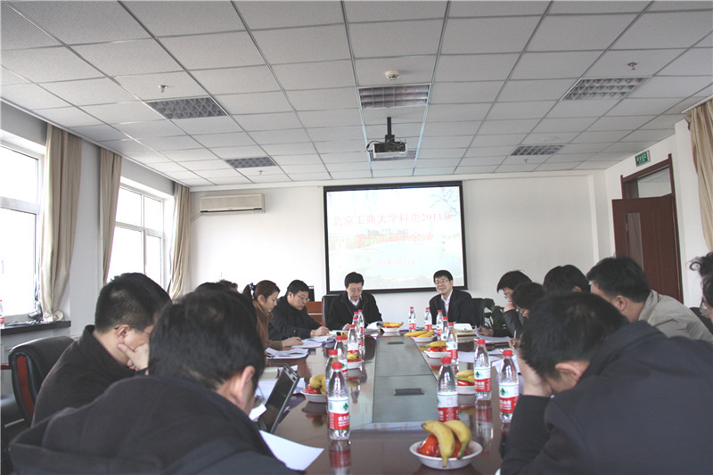 王国顺秘书长介绍了我校科协成立以来开展的相关工作,王秘书长指出,学校科协是在学校党委和行政领导下的全校教师、科研人员和学生的群众性学术团体,科协2011年的工作要围绕服务全体教师、科研人员和学生的科研来展开,每个部门要有年度工作计划,做至少一项重要工作,把它做好,做出北工商的特色。