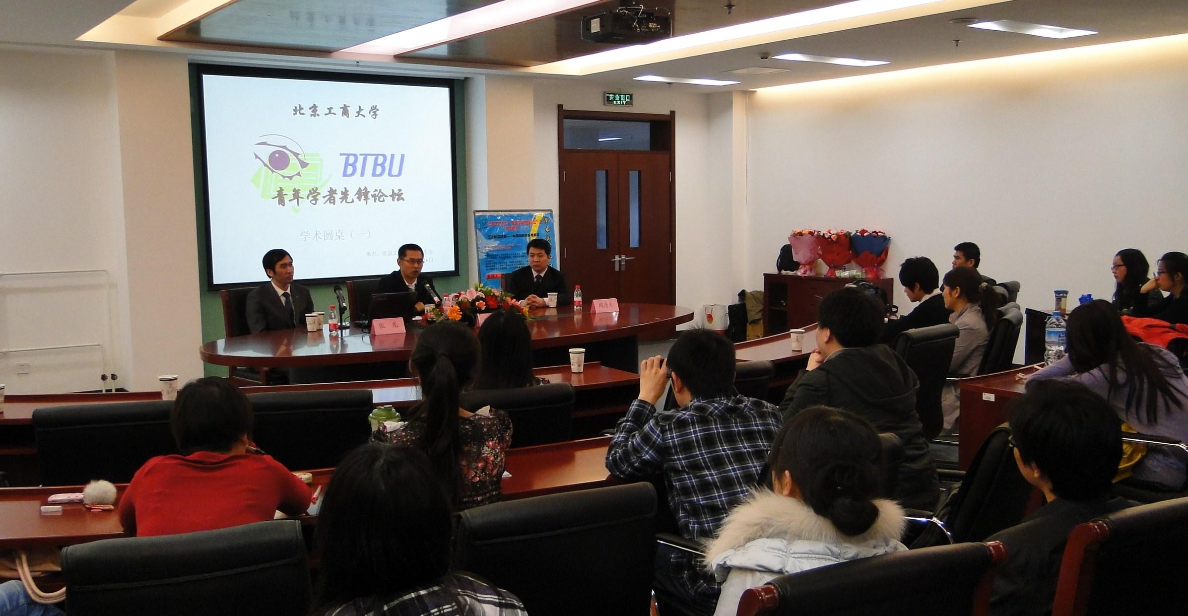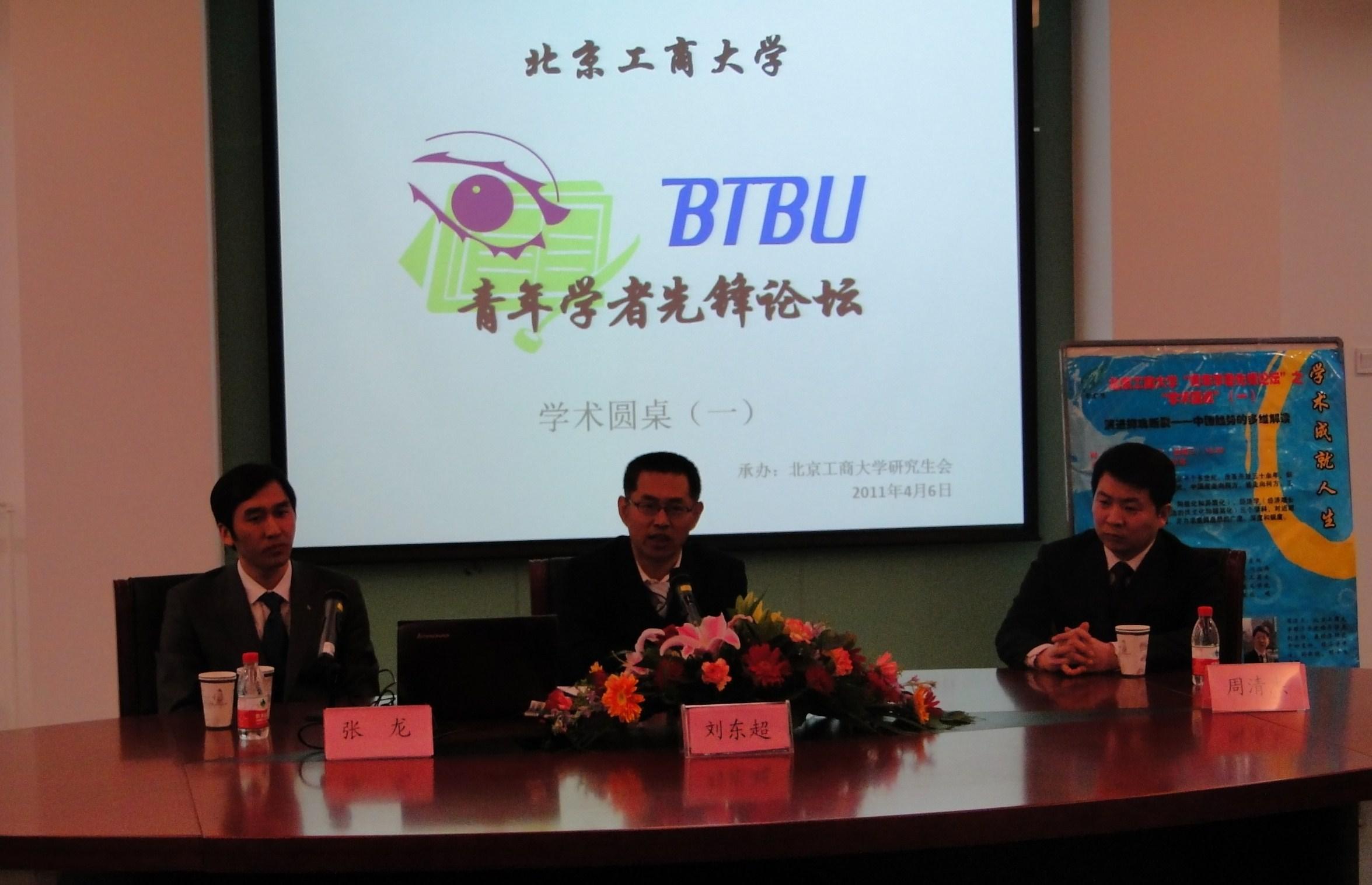 4月6日,青年学者先锋论坛之学术圆桌在阜成路校区举办。校党委副书记、纪委书记兼工会主席张德玉、校工会常务副主席韩宝龙、校团委副书记郭新愿亲临活动现场。法(马克思主义)学院刘东超教授、张龙副教授以及经济学院周清杰副教授受邀出席,分别作主题发言并与在座的研究生同学交流、互动。
