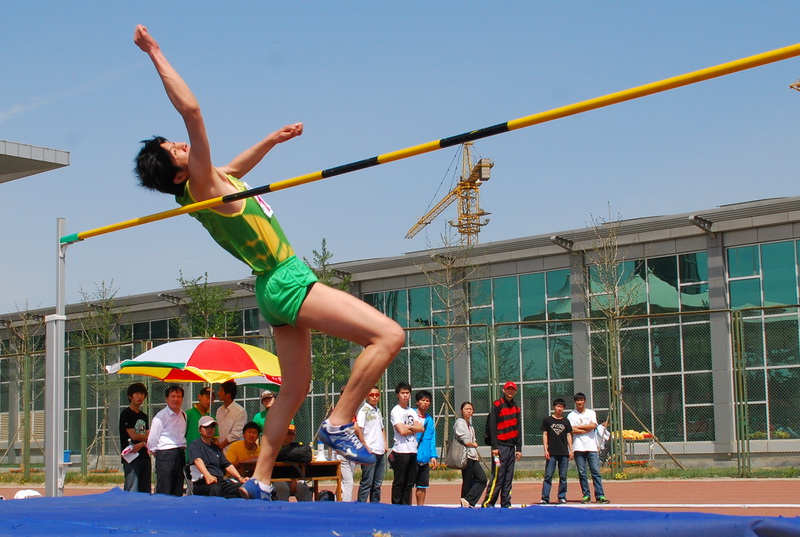 飞机从蓝天划过,留下一道纯白的痕迹,就像那条要去征服的横杆。阳光下,汗水从运动员的脸颊上缓缓流下,晶莹的汗珠随着运动员的跳动坠落到地上。来自嘉华学院的李轩上场了,只见他反复量着步子,最终一锤定音,跑出一道漂亮弧线,腾身一跃,成功跳跃过高架的横杆。随之而来的掌声与欢呼声都证明:他是跳高冠军。同时,这也是他连续4年蝉联男子跳高冠军,他还保持着校跳高记录。已经大四的李轩这是最后一次参加学校运动会了,这次有些遗憾没能突破自己的最好成绩。但他仍跳出了自信,跃出了荣誉,他是跳高场上的不败者。