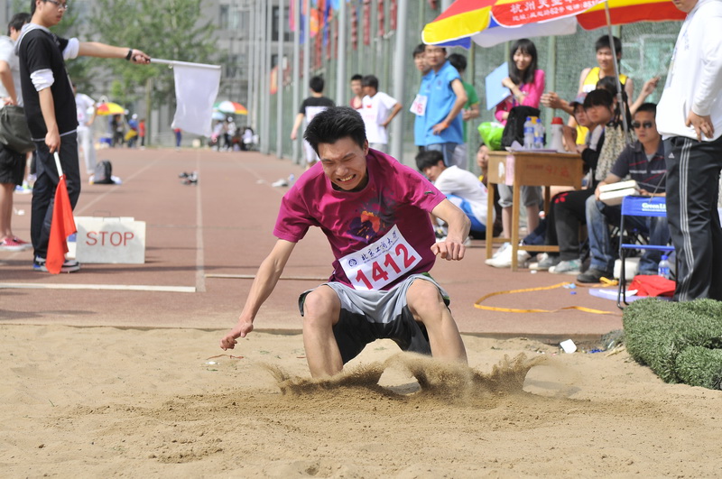 助跑、加速、踏板、腾空、前冲!5月7日下午,运动员们速度、力量与技巧的完美结合让大家欣赏到了一场高水平的男子跳远决赛。只见一名运动员箭一般的助跑,越来越快,然后在起跳板前腾空一跃——5米43,冠军产生了!他精彩的一跳赢得了所有在场观众的掌声,他便是来自嘉华学院的罗聪昆。“是坚持和拼搏让我赢得了比赛,我为身为嘉华人而骄傲!”罗聪昆激动地说。刻苦的训练和不屈的意志让他摘得桂冠,也为嘉华学院在本次运动会上精彩的表现又加上了浓重的一笔。