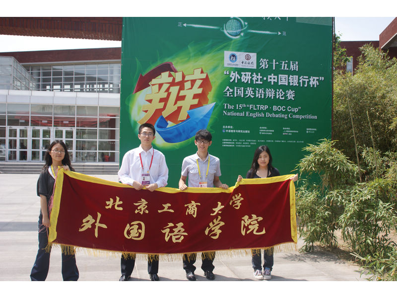 5月7日至14日,由外研社主办,中国银行独家冠名的第十五届“外研社·中国银行杯”全国英语辩论赛总决赛在北京隆重举行,我校代表队荣获全国三等奖。