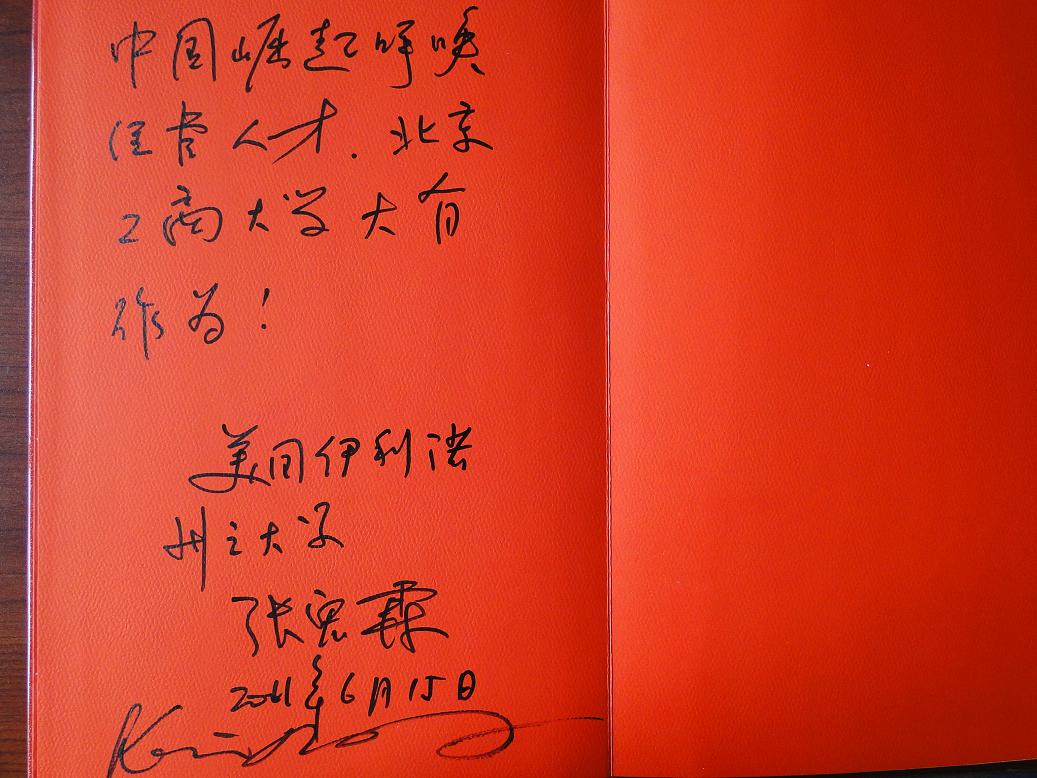 最后,张宏霖教授还为我校研究生题字“中国崛起呼唤经管人才,obao欧宝娱乐 大有作为!”
