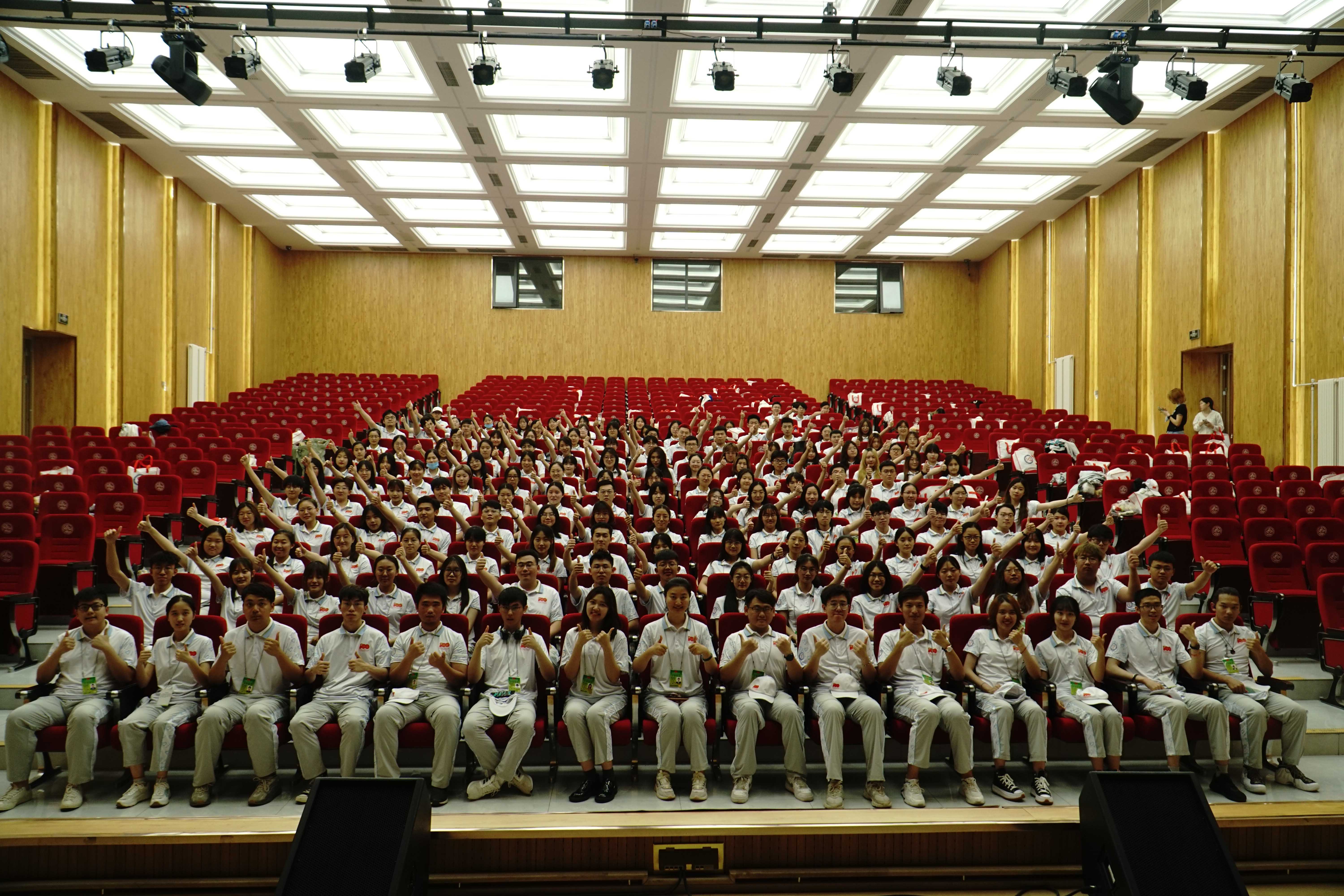 志愿者代表陈兆琦带领全体志愿者进行志愿宣誓,高昂洪亮的誓词在报告厅中盘旋,220名志愿者吹响出征的号角,雷动决心的战鼓。