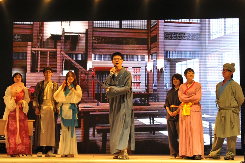 同时,语言类节目也在文艺汇演中大放异彩。由大一学生焦雷、陈雪强带来的原创相声《初恋那些囧事》一度让全场的每个角落都洋溢着笑声。而话剧《武林外传》更是克服了排练的困难,在再现经典的同时加入了自己的改编,从而在充分展现演职人员才艺的同时,也在现场呼应的效果上收到了奇效。