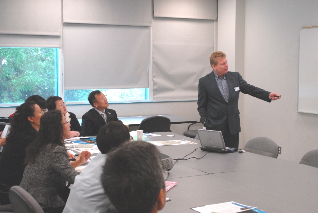 精彩的报告让团员们忘却了疲劳,第二天又精神饱满地听取了该校戴维斯分校人力资源部埃尔恩•汤普逊(Irene Horgan-Thompson)部长关于福利待遇、岗位管理和发展的专题报告。该校可持续发展中心主任、国际著名政治学教授拉里•伯曼(Larry Berman)教授就美国现有的政治体制、高等教育体制和高等教育的层次构成及办学特色、现状等问题,做了全面系统的解读,使培训团成员全景式地了解到当下美国的政治经济及高等教育状况。团员们珍惜每个学习机会,课堂上踊跃提问,和教授们交流热烈。