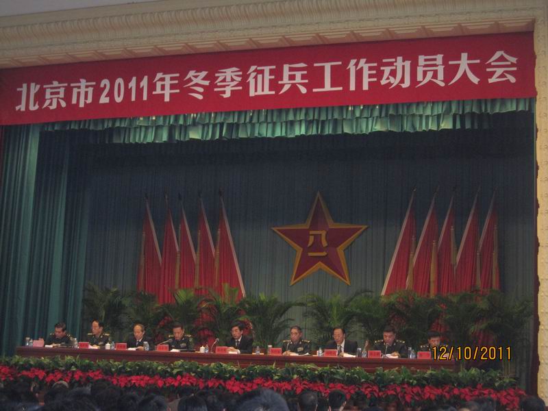 10月12日,北京市2011年冬季征兵工作动员大会在北京卫戍区礼堂隆重召开,拉开了2011年冬季征兵工作的序幕。我校党委副书记卢思锋应邀出席了大会。