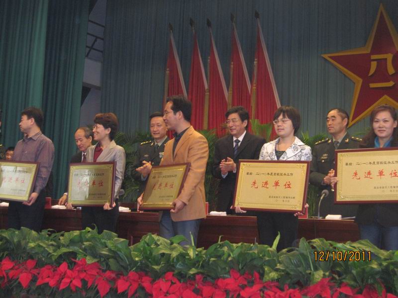 大会由北京卫戍区高东璐政委主持,北京市市长郭金龙、北京卫戍区司令员郑传福出席并讲话。北京市副市长刘敬民宣读《北京市人民政府、北京卫戍区2011年冬季征兵命令》,北京卫戍区参谋长邵亨总结2010年征兵工作情况并部署2011年冬季征兵任务。北京卫戍区副政委郭志刚宣读《关于表彰2010年度征兵工作先进单位的通报》,军地领导为2010年冬季征兵工作先进单位颁奖。我校作为十所高校之一受到大会表彰,武装部部长吕素香上台领奖。
