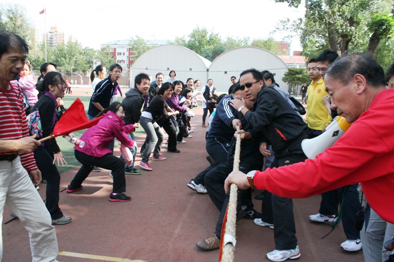 趣味运动会是校工会的传统活动之一,至今已成功举办五届。校工会高度重视这一活动的品牌建设,突出活动的创新性、参与性与持续性。项目设计方面,所有项目均为集体项目,突出趣味性和团队性;在原有的沙包攻垒、齐心颠球、集体跳绳、拔河等项目的基础上,今年还新增加了混合接力、巧接足球两个项目,既有趣味性和技巧性,又能体现团结协作精神。