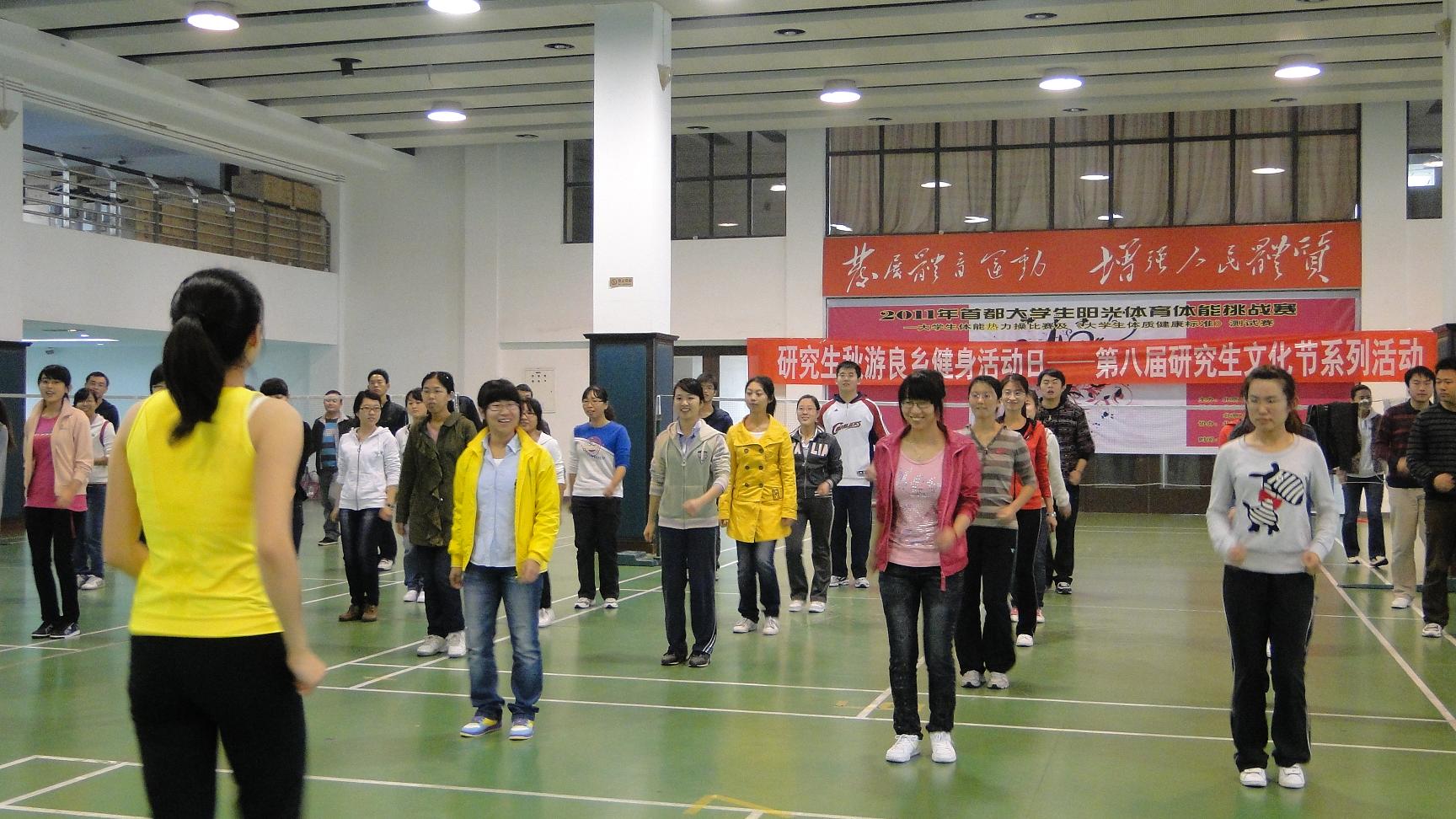 参观结束后,同学们有组织的在文体馆进行了有氧健美操运动和羽毛球、乒乓球比赛。比赛在“团结合作、友好比赛”的精神指引下顺利进行,同学们积极参与,赛场气氛紧张而又激烈,不时将比赛气氛推向高潮。比赛丰富了同学们的课余生活,也拉开了第八届研究生文化节的序幕。