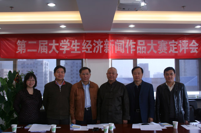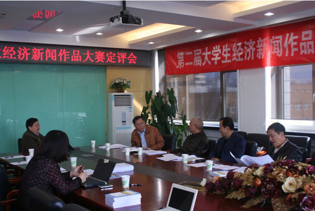 本次大赛评委会评委由学界的专家学者和业界的资深媒体人组成。来自学界的评委有全国新闻学会会长、中国人民大学新闻与社会发展研究中心主任郑保卫教授,教育部教指委副主任、中国传媒大学传播研究院院长雷跃捷教授及我校艺术与传媒学院院长沈毅教授等人;来自业界的评委包括首都青年编辑记者协会主席、改革发展出版社社长包月阳、《经济参考报》总编辑杜跃进、中国青年报社常务副社长张坤、首都青年编辑记者协会副主席徐卫东、《全球商业经典》总编辑何力、著名财经媒体人贺宛男、《21世纪经济报道》总编辑刘洲伟、《中国经济时报》副总编辑车海刚、搜狐副总编王子恢等人。新闻系主任王擎向与会领导、专家介绍了本次大赛的进程、前期准备工作、参赛稿件分布情况和评委会初评、复评的结果。