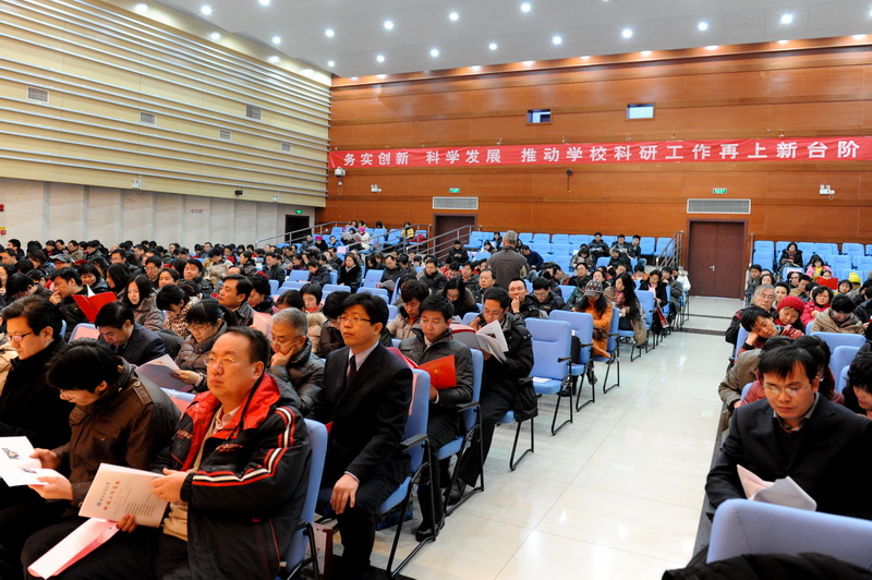 谢志华副校长作主题为《务实创新、科学发展、努力推动学校科研工作再上新台阶》的年度科研工作报告。报告总结了2011年学校科研工作的主要成绩:科研项目数量和水平不断提升;科研经费持续增长、再创新高;科研成果数量、质量明显提高;科研优势特色进一步突现;科研成果转化成效显著;科研队伍建设进一步加强;科协引领科技的示范效应得到充分体现;学术交流日益活跃。报告明确了2012年学校科研工作的思路与任务,提出了2012年学校科研工作的目标与举措:一是实施文化创新战略,强化科研服务首都社会经济建设;二是进一步提高科研质量和水平,完善科研评估体系;三是优化科研资源配置,提高学校科研资源的使用效率;四是加大青年教师培育力度,快速提高青年教师的科研实力与水平;五是理顺科研管理体制机制,不断提高管理服务科研的效率。