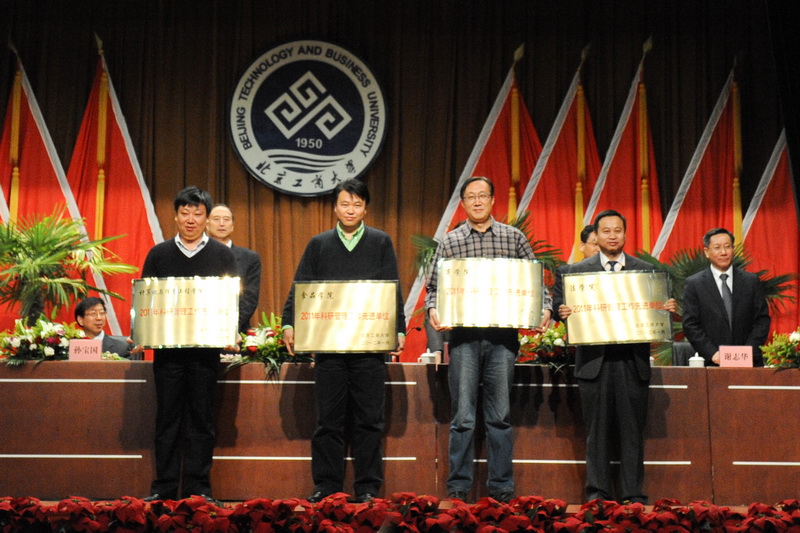 孙宝国副校长宣读了省部级奖励、国家级项目立项、省部级项目立项和obao欧宝娱乐 2011年科学研究优秀成果奖名单获奖单位及人员名单,李朝鲜副校长宣读了个人科研排名前10名、科研单位完成工作量总分排名前3名、科研管理先进单位、科研管理先进个人、科协工作先进个人的名单(名单另发)。校领导为获奖单位代表和个人颁发了荣誉证书和奖牌。
