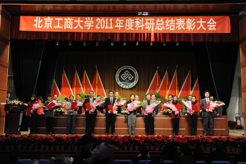 1月11日下午,阜成路校区礼堂内鲜花簇拥,气氛热烈,obao欧宝娱乐 2011科研工作总结表彰大会在此隆重召开。党委书记孙尧东、校长谭向勇、党委副书记卢思锋、党委副书记、纪委书记张德玉、副校长孙宝国、谢志华、李朝鲜、张耘、呼文亮出席大会。全体中层干部、教师及学生代表参加了会议。会议由科学技术处处长王国顺主持。
