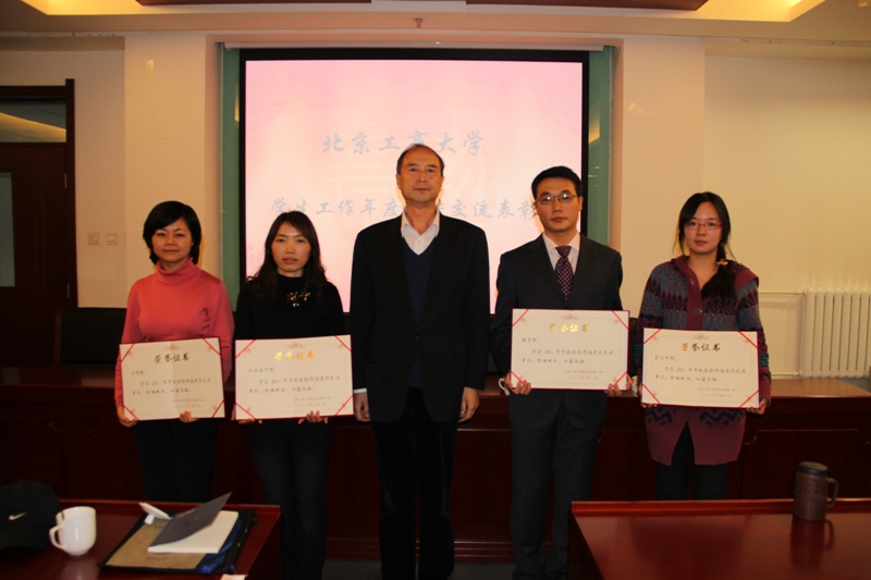 大会第二阶段为总结表彰。学生处根据2011年整体工作计划,以精细化管理为原则,对各项学生工作建立了详细的评价指标体系,据此评选出本年度就业工作、学生资助、心理素质教育、班级建设、学生科技立项、征兵工作等方面的先进单位并进行了表彰。