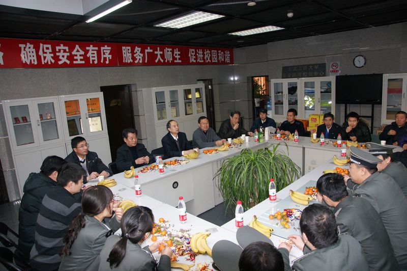 卢思锋率队于11时和15时分别在良乡校区和阜成路校区检查了学校总值班室、应急指挥中心、图书馆、动力站、后勤24小时服务大厅、通宵教室、保卫门岗和学生宿舍等重点部位的安全工作,详细了解值班职工假期的生活保障情况,他要求每位值班干部和职工要把安全生产放在工作首位,确保全校师生过一个安乐祥和的新春佳节。他希望后勤保卫职工在新的一年里再接再厉,继续为全校师生员工提供更加优质的后勤服务保障,以更加优异的成绩迎接党的十八大胜利召开。