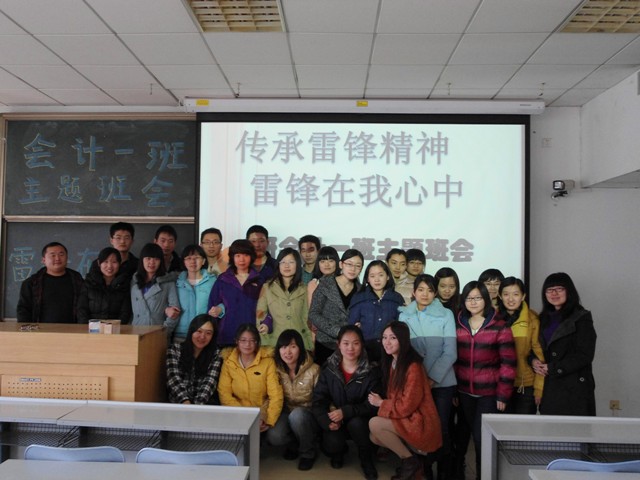 11研经济五、11研会计一等7个团支部组织班级同学召开当代雷锋精神的主题讨论交流会。会上,各团支部通过ppt文字图片说明的形式,学习了50年来雷锋精神的演进史,了解诠释不同时代雷锋精神内涵和意义;并围绕着“奉献精神”、“钉子精神”、“艰苦奋斗精神”展开了热烈而积极地讨论。11研食品三团支部在讨论会上,还组织同学们拿起手中的画笔,描绘自己心中的雷锋形象。