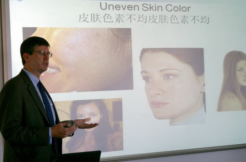 Jones博士为理学院师生做了题为“皮肤色素沉淀:来自化妆品行业的展望”的专题报告。介绍了皮肤色素沉着和皮肤科学的最新研究进展。其中重点介绍了皮肤美白研究中的传统和现行的靶测试方法和人体皮肤细胞培养、生物工程构建的皮肤以及基因敲出技术在皮肤美白与肤色均匀研究中的应用。Jones博士还回答了师生的提问。此外,化妆品技术团队还与Jones博士就国际化妆品行业目前状况和发展方向进行了探讨,并约定下次讲座内容和时间,双方计划今后在科技交流、国际学术互访和交换培养学生(本科和研究生)方面能够开展更广泛的合作。