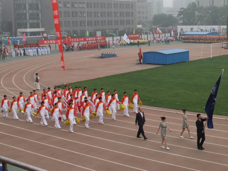 食品学院39名同学组成的方阵代表我校参加了运动会入场式,他们在卢思锋副书记的带领下,以饱满的精神状态、矫健的步伐和多变的队形展现了我校学子的青春活力和昂扬向上的风貌。方阵在体艺部韦见凡老师、食品学院徐瑾老师的负责和训练下,利用学生课余时间,顶着烈日,不辞辛劳,力求做到口号响亮、精神饱满、拼“徽”完美。我校也因出色表现再次获得“体育道德风尚奖”。