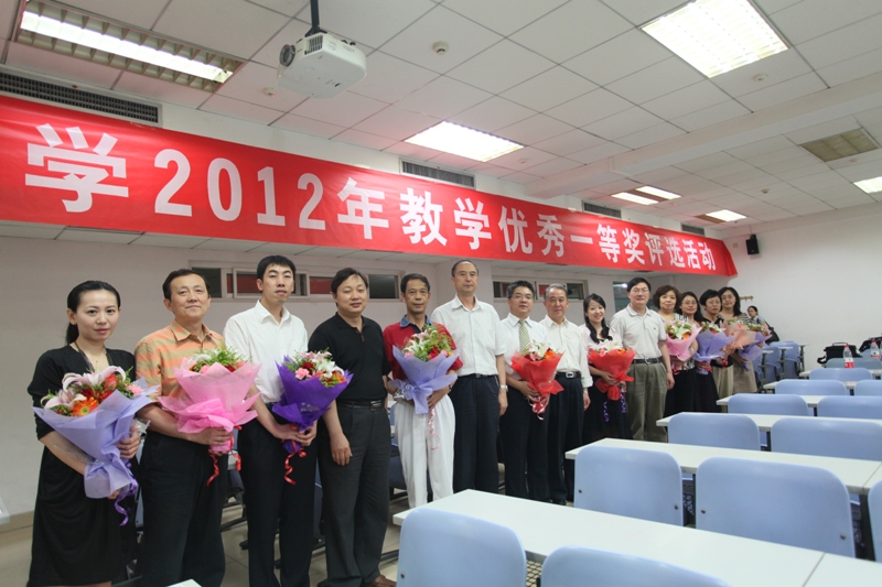 在经过各学院(部)初审推荐、教务处资格复查、各学院(部)组织专家进课堂、同行评价和学评教等环节打分后,学校于6月13日下午隆重举行了2012年教学优秀奖一等奖评选活动。