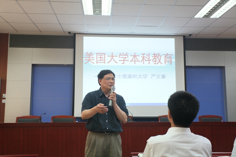 6月21日下午,应学校教务处邀请,美国麻州大学教育领导学系系主任、教育领导研究中心主任、终身教授严文蕃来我校作了题为“美国大学本科教育与高素质人才培养”的报告会。报告会由教务处处长魏中龙主持,部分学院院长、部分学院(部)主管教学工作副院长、系主任、专业骨干教师、相关职能部门负责人等到会聆听报告。