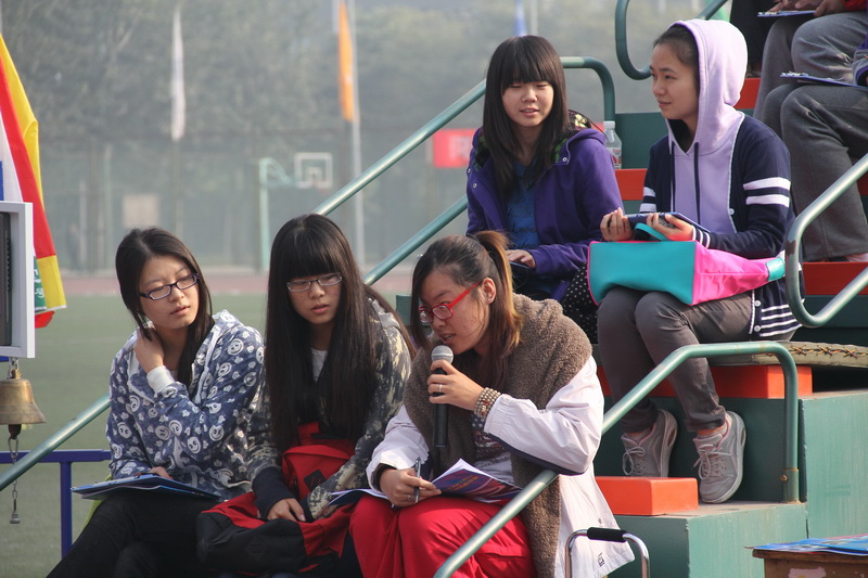 “自信就是希望,我们会将团结垒成力量。”一位正在热情地给运动员加油的啦啦队员李嘉琪激动的说。在观众席上和赛道旁边有许多为运动员加油助威的同学,他们是由院里组织的“啦啦队”。敲着战鼓,喊着口号,同学们在以全力为运动员们喝彩。看台上,彩色的气球,独具风格的助威展板,还有高举着加油棒的师生们,共同凝聚着团结与激情。