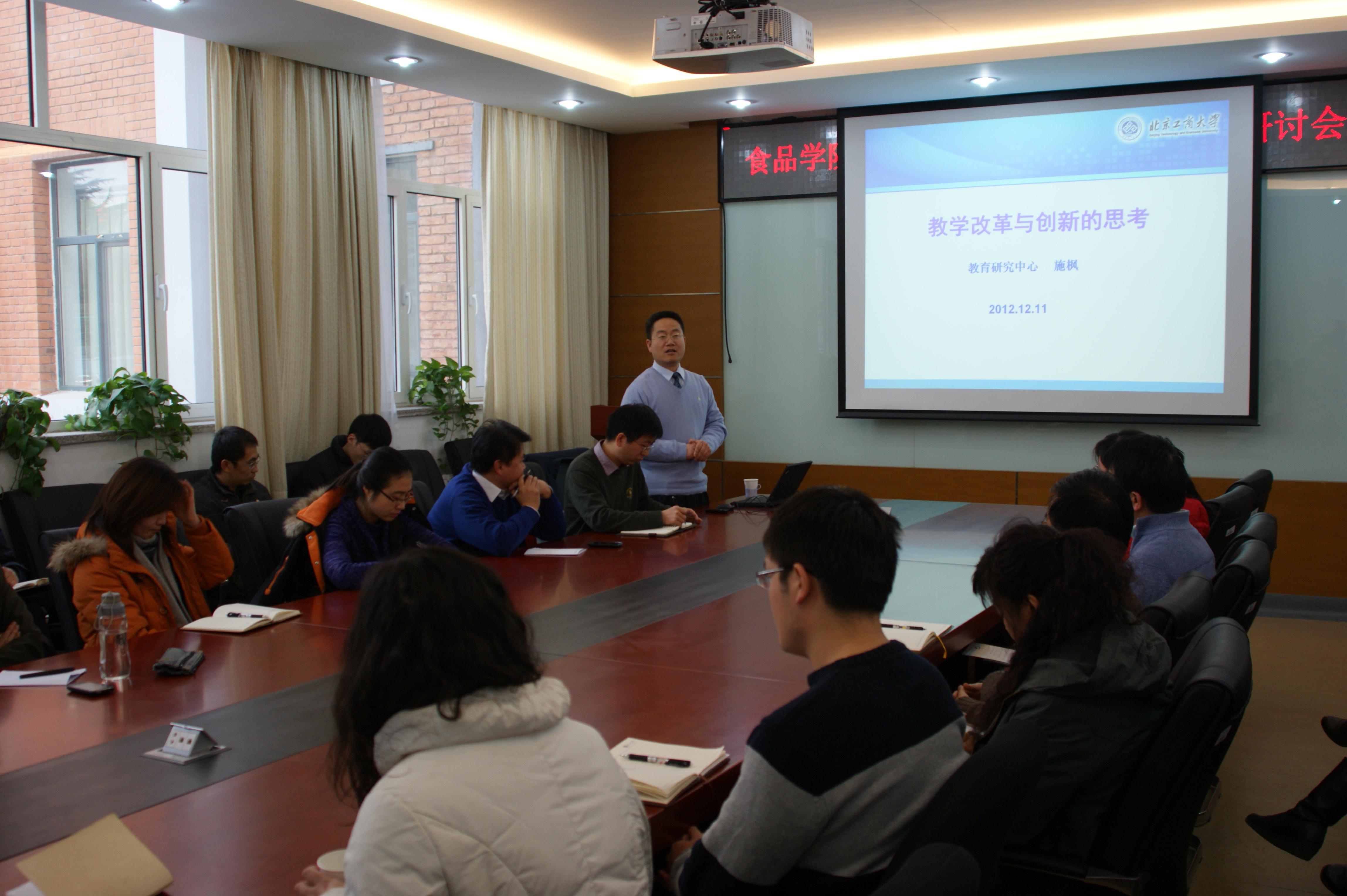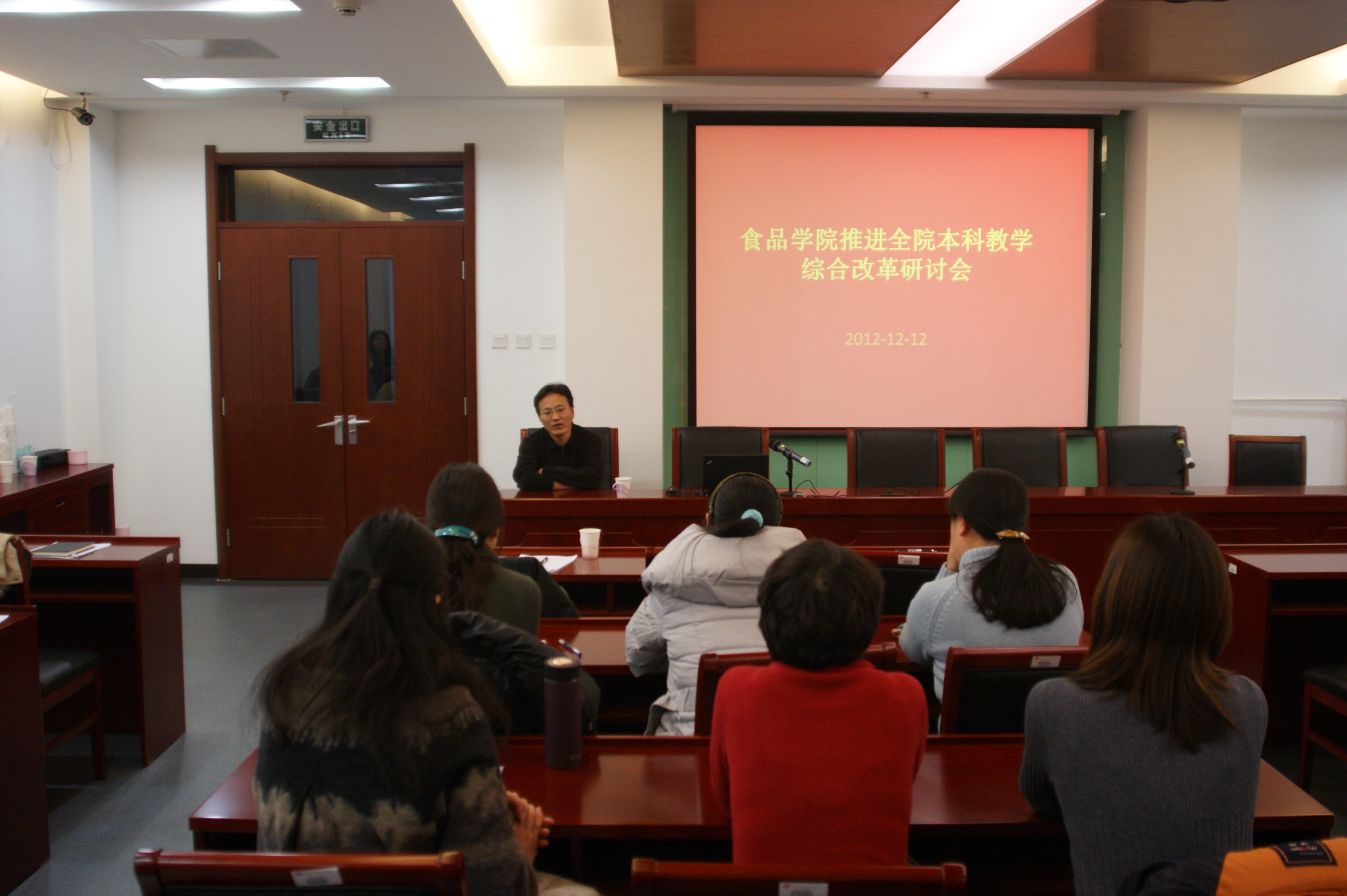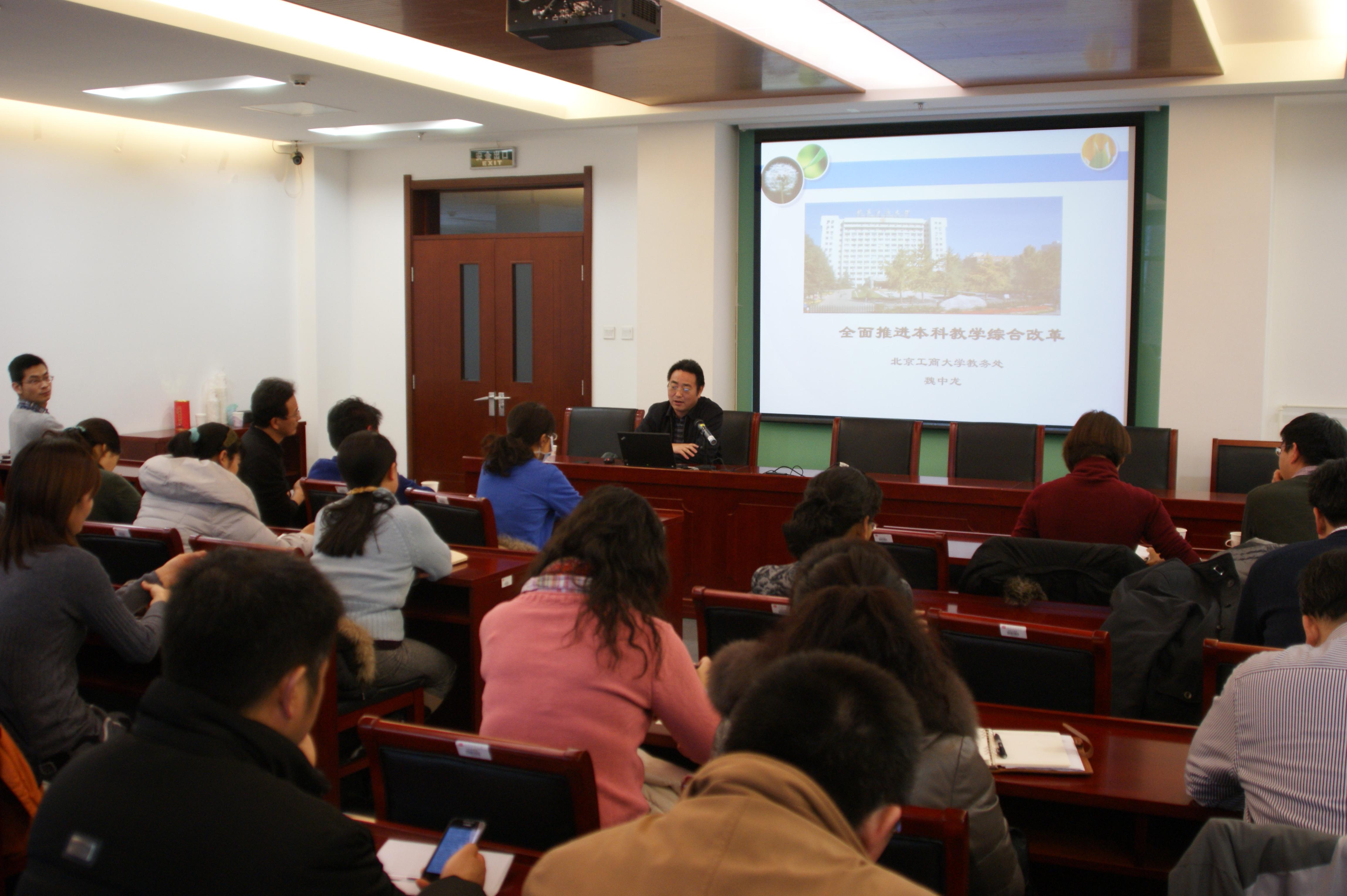 魏中龙处长做了主题为“全面推进本科教学综合改革”的报告,分别从怎样看待本科教学综合改革、为什么要进行本科教学综合改革、我校本科教学存在的问题、本科教学综合改革的措施、本科教学综合改革的目标进行了深入论述,并对食品学院的本科教学改革提了5条建议。