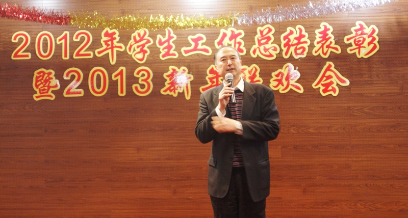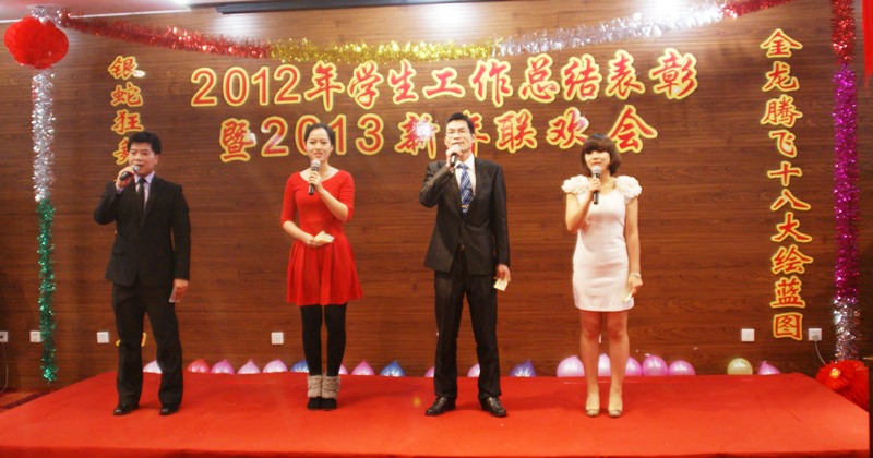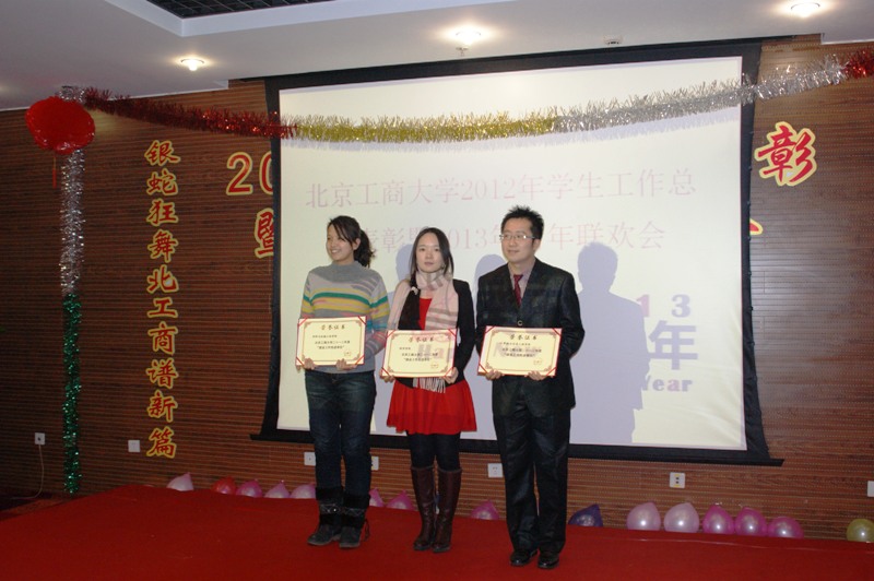 金龙腾飞辞旧岁,银蛇狂舞庆新年。1月10日,学生处在阜成路校区隆重举行2012年学生工作总结表彰暨2013年新年联欢会。除学生工作系统全体教职工外,此次联欢会还特意邀请到了学校办公室、党委组织部、教务处、研究生部、人事处、后勤管理处、保卫处、体育与艺术教学部、图书馆、校医院等职能部门的相关领导参加,充分体现我校“大德育”的工作格局。大家欢聚一堂,载歌载舞,共同回顾2012年走过的光辉岁月,畅想2013年的美好未来。