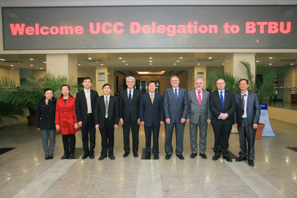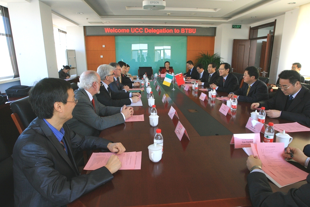 2013年3月4日至5日,由爱尔兰考克大学副校长特雷福•赫尔姆斯(Trevor Norman Holmes)带队的爱尔兰考克大学代表团一行7人访问我校,就两校合作办学项目与我校进行会谈。谭向勇校长、李朝鲜副校长在阜成路校区会见了考克大学代表团。