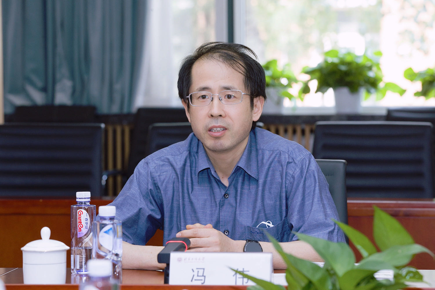 座谈会前,冯伟一行实地走访了学校数字未来中心,曹显兵介绍了中心建设情况、信息技术与教育教学深度融合等有关情况。