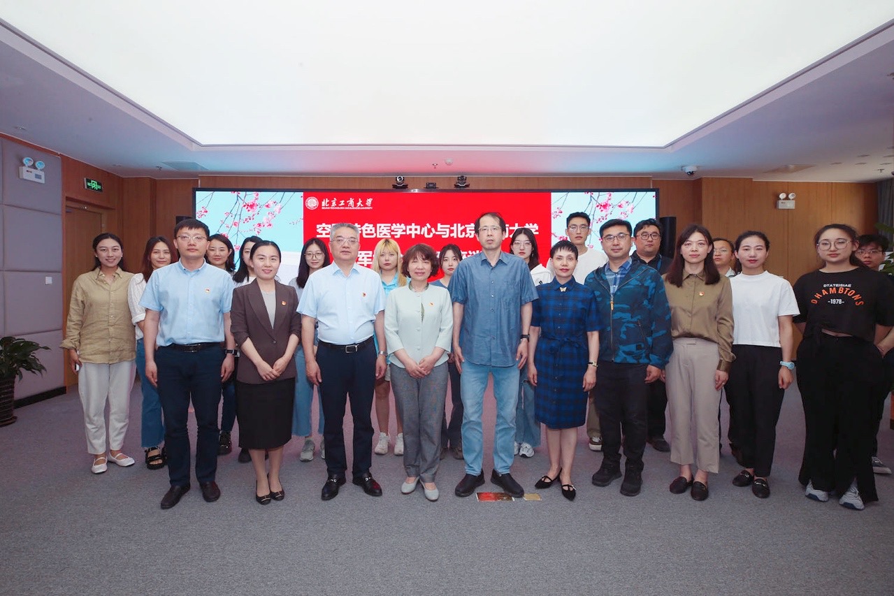 为深入开展学习贯彻习近平新时代中国特色社会主义思想主题教育,落实习近平总书记“深入实施军民融合发展战略”,5月24日上午,空军特色医学中心与我校合作共建座谈会在阜成路校区举行。学校党委常委、纪委书记、监察专员欧阳媛,空军特色医学中心中西医结合正骨科主任冯伟大校,全国三八红旗手、空军一级技术能手、护士长甄鹰,副主任郭伟等一行五人出席。学校教务处处长曹显兵,党委组织部副部长郑光,传媒与设计学院党委书记王海伟、副院长刘红菊、数字媒体艺术党支部书记吴思淼和师生代表参加座谈会。座谈会由王海伟主持。