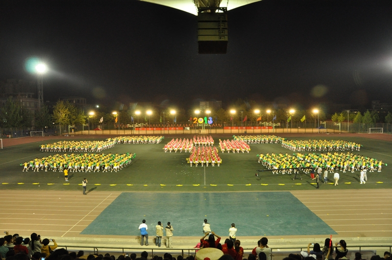 飞扬的激情,我校九个学院的小伙子们踏着有力的脚步展现着他们青春的活力。他们身穿红、蓝、绿、橙、白色的服装,9个团队用山羊跳、钻呼啦圈竞赛和丝带传递等动作阐释了“爱心接力、希望传递、众志成城、爱心飞翔”的理念和精神。他们高举“中国梦·校园情·快乐心”的展板,展现了当代大学生积极乐观、勇于担当、关爱他人、团结互助的良好精神风貌。我校外教Dorota激动地说:It is beautiful,really!