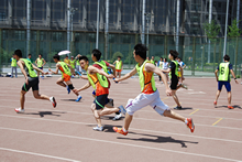一声枪响,健儿们飞奔而出,他们以最强的爆发力、最快的速度冲向下一棒的队员,同时他们也不忘有技巧的交接接力棒,前一棒同学像是后一棒同学的助推器,他们飞速前进,伴随着一阵阵的欢呼和掌声。最终,嘉华学院以56.7秒的成绩夺得女子4*100接力赛冠军,最后一棒的梁琦同学紧握双拳,很冷静地说:“付出两个月的努力终于有了回报!”