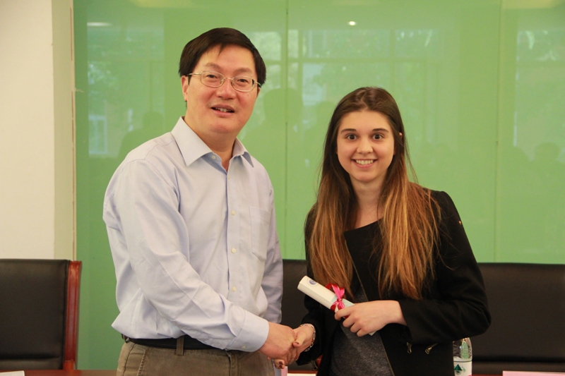 随后,来自法国拉罗谢尔商学院的外国留学生艾利克斯(CASTEL ALEXANDRA)作为留学生代表发言,她表示,通过在校一年的学习与生活,他们加深了对中国语言与文化的了解,并感谢学校领导、老师及同学们的亲切关怀和帮助,使他们在这里度过了一段非常难忘的留学生活。
