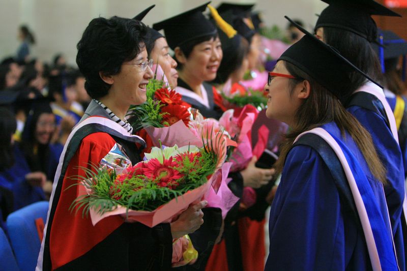 伴随着欢快的乐曲和热烈的掌声,毕业生代表手捧鲜花向出席毕业典礼的领导和导师们表达深深敬意和临别前的感谢,面对鲜花和祝福,有的学生忍不住流下喜悦的泪水,大家纷纷拿起相机记录这感人、难忘的瞬间。