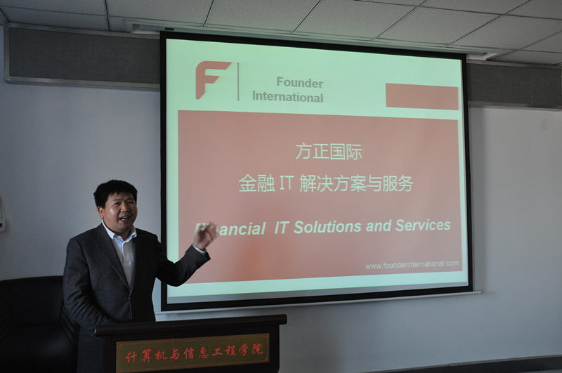 11月7日,现任方正国际软件有限公司副总裁,我校95级商经系研究生施华应邀为计信学院的师生作了一场关于金融信息化领域发展现状的学术报告。报告会由学院院长蔡强教授主持。 施华副总裁以“IT改变金融”为核心理念,以方正国际软件有限公司在金融行业的多年实践为例,对金融IT的解决方案、银行核心系统、金融技术平台以及银行系统应用等几方面进行了详细的讲解,阐述了计算机与IT技术在金融信息化过程中所起的核心作用。 施华副总裁结合自己的职业经历提出,当前大学人才培养模式,应当结合学校的优势学科领域,做到培养模式创新、内容创新。他对计信学院在行业急需具备金融领域背景知识和能力以及计算机能力的复合型人才的背景下设立两个面向金融领域的专业,培养互联网金融与金融服务软件人才的定位表示赞赏,对相关老师的努力给予充分肯定。同时,他以校友的身份,与到会的各位教师、研究生就校企合作、人才对接等方面进行了热烈讨论,并就课程共建、人才需求、毕业生能力培养等方面,对学院师生提出有益的建议。 学院党总支书记陈谊教授、教务处副处长李海生教授、计算机系教师和研究生共30余人参加了会议。报告会现场气氛热烈,参会教师表示,听取该报告会受益匪浅,将积极投入到专业建设和深化教学改革的实践中去,为培养具有鲜明“北工商”特色的复合型计算机与软件人才而努力。