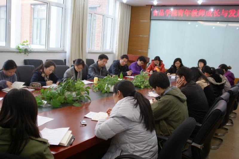 学院党总支关心青年教师的成长与发展,针对近年来新进青年教师人数较多的情况,总支以支部为阵地,先后采取了广泛调研、召开青年教师职业发展工作会、聘任青年教师职业引导师、举办青年教师职业发展主题培训、食品支部青年教师沙龙等方式,为青年教师搭建平台,创造机会,跟踪发展,提供指导。在践行党的群众路线过程中,总支查摆问题,认真分析,积极探索助长青年教师的长效机制和措施,努力使青年教师助长工作走上规范化、制度化、长效化道路。